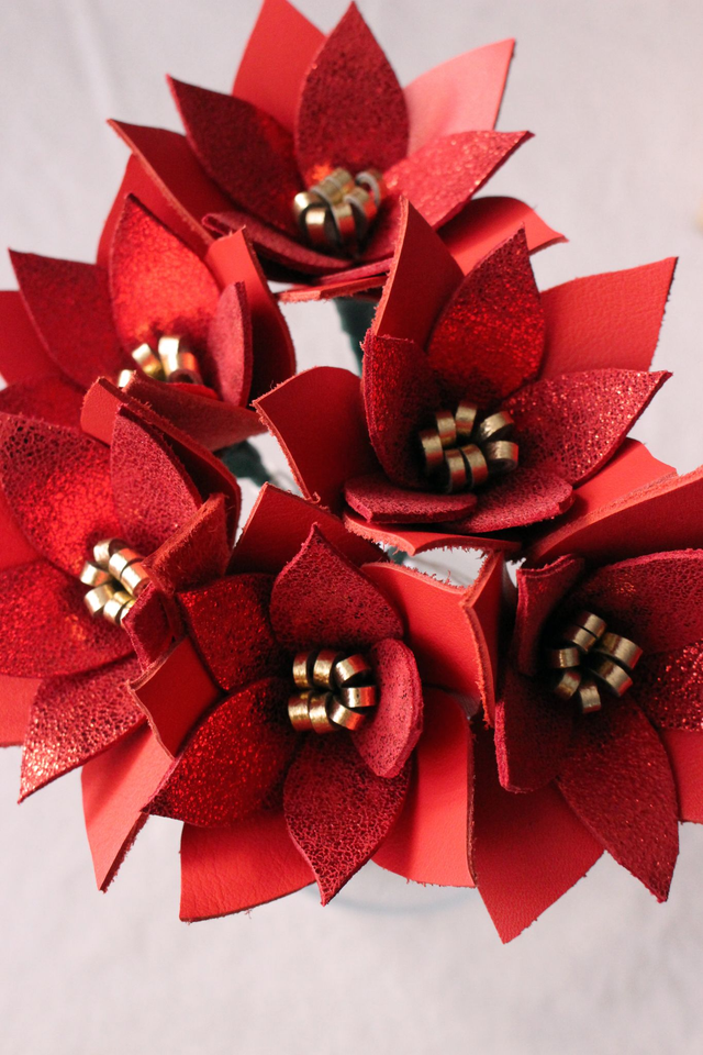 Chaque fleur est réalisée dans le but de revaloriser les chutes de cuir provenant de la fabrication des articles LB Maroquinerie.